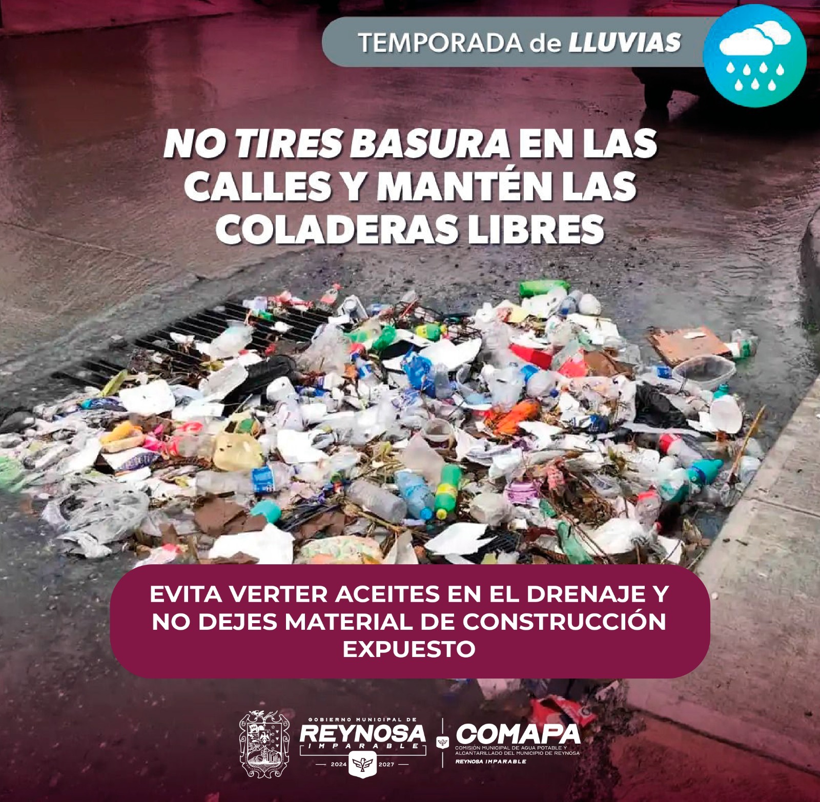 Exhorta COMAPA a mantener libres las alcantarillas en temporada de lluvias